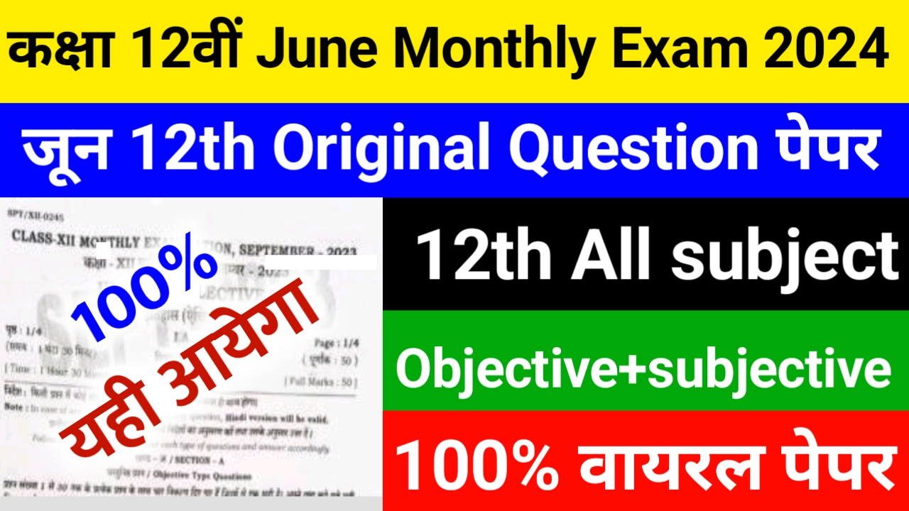 इंटर जून मासिक परीक्षा 2024 all स्ट्रीम का क्वेश्चन पेपर: