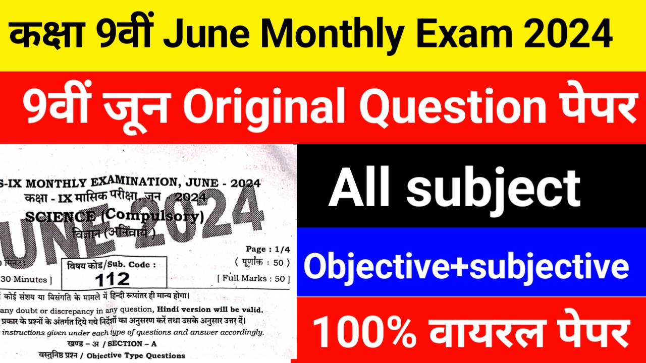 कक्षा 9वी जून मासिक परीक्षा 2024 का आयोजित कराई जाएगी: