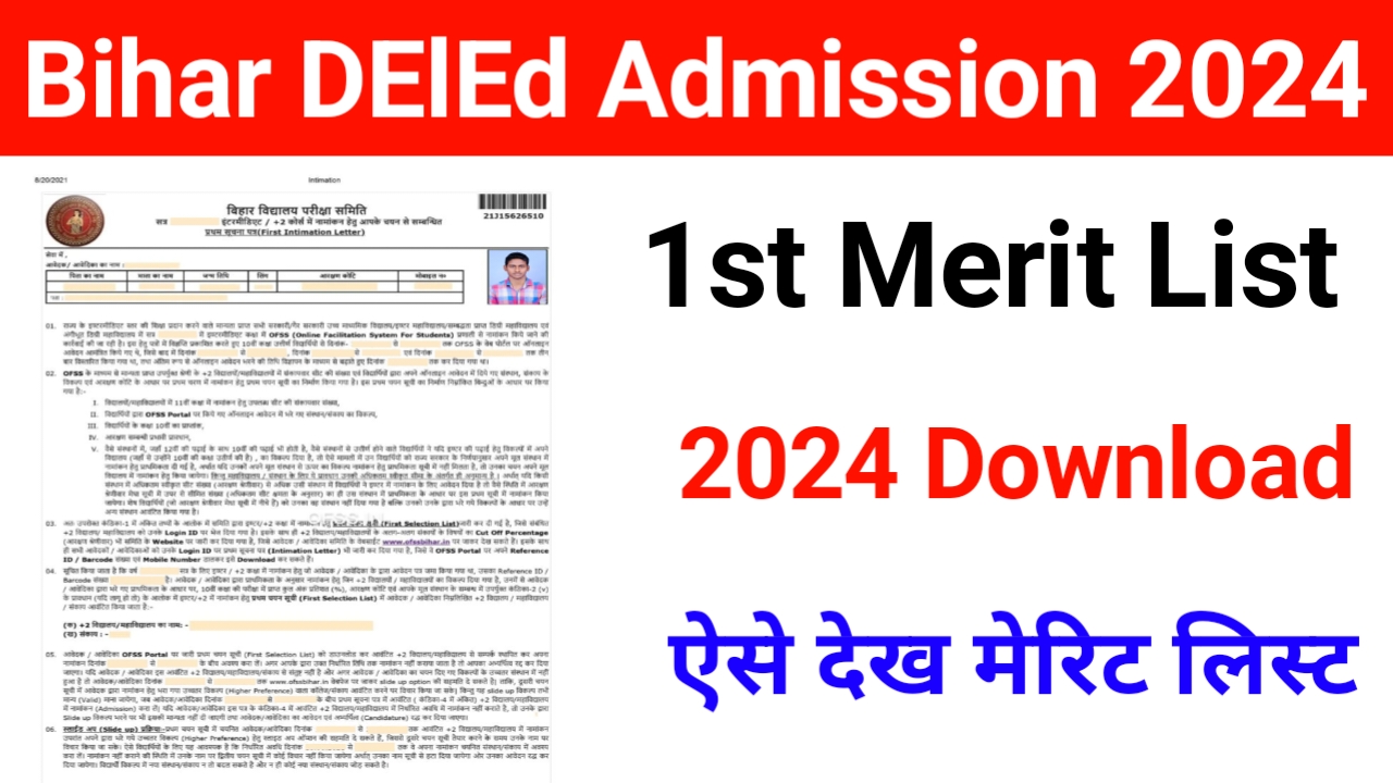 Bihar DElEd Merit List 2024 || Bihar DElEd फर्स्ट मेरिट लिस्ट 2024 Date Jari