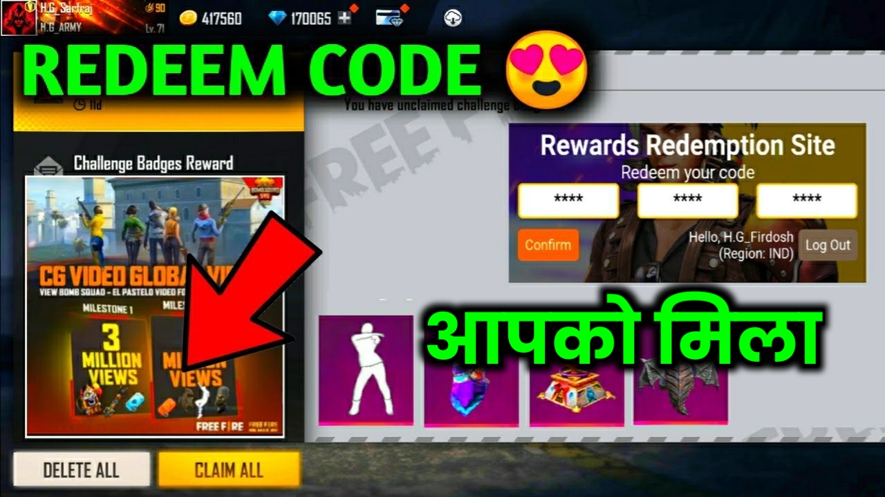 अपनी आईडी लॉगिन कर लेने के बाद आप सभी को नीचे जितने भी रिडीम कोड दिए गए हैं सभी रिडीम कोड को कॉपी करके उसमें डालकर सबमिट वाले बटन पर क्लिक कर देना है सबमिट करने के लगभग 24 घंटे के भीतर में आपकी आईडी में यह सारे रिकॉर्ड समेत ढेर सारे डायमंड आपके आईईडी में डाल दिए जाएंगे