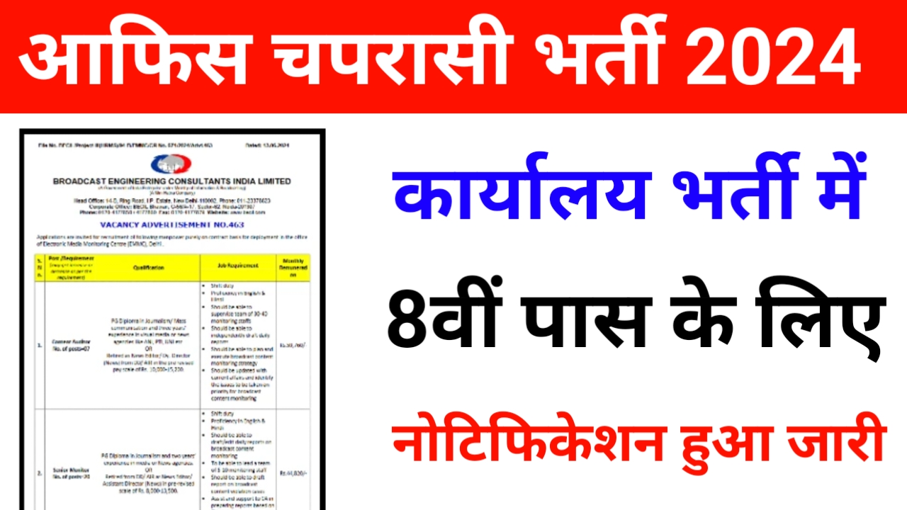 Office Peon Vacancy 2024: कार्यालय चपरासी में भर्ती के लिए नोटिफिकेशन जारी, यहाँ से करें आवेदन